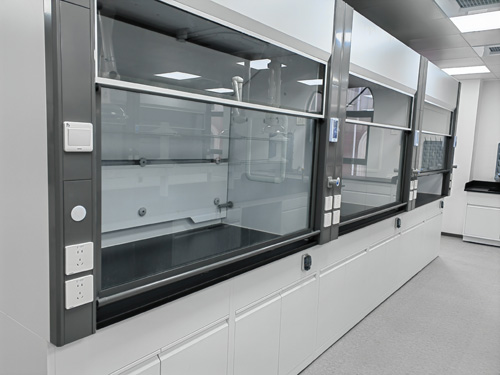 (1)上方柜子:采單層結構設計,外面為鋼殼,里邊為檢測室上用耐酸性堿6mm厚抗倍特板,兼具家里防潮濕、防彎折、抗蠕變等能力;相對是需要在不銹鋼臺面采取清洗的開窗通風柜,入乎襯板滿足需要抗潮和抗生銹規定要求.殼體與內襯間閣層,可解決水、電、實驗室氣體污水管設計,并可有效確保柜子水密性與保護。